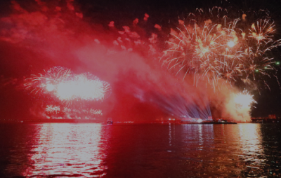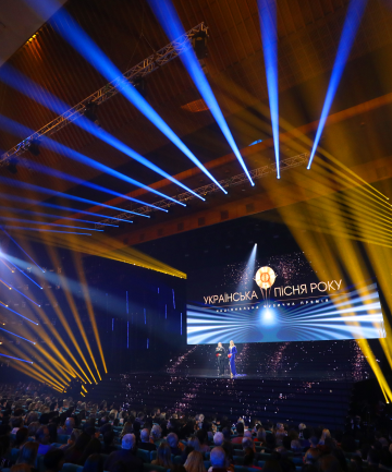 Festiwal światła w centrum telewizyjnym w Kijowie